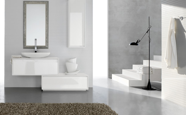 Il bianco eletto a colore universale viene arricchito dai piani top in vetro, che introducono una nota di colore con la delicatezza del bianco o la forza del nero.