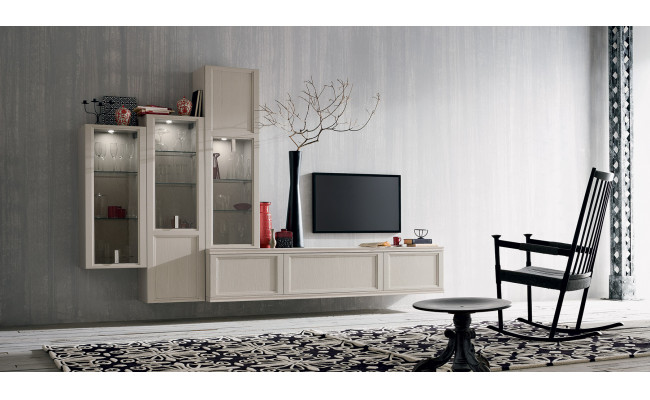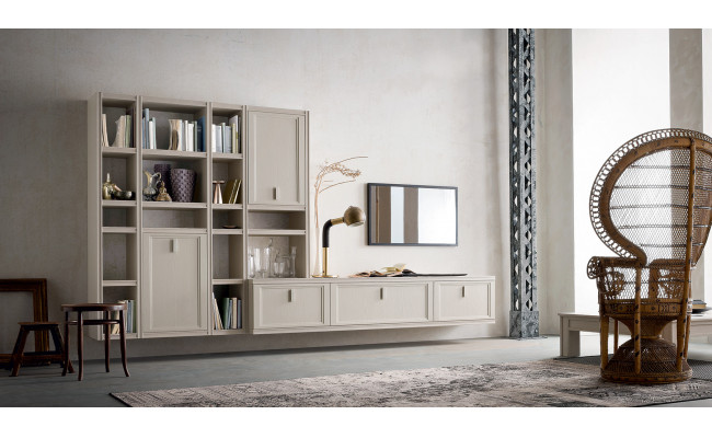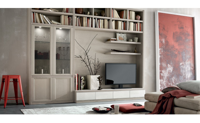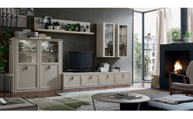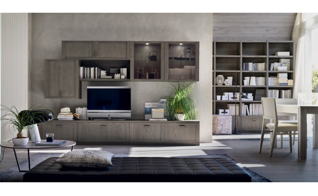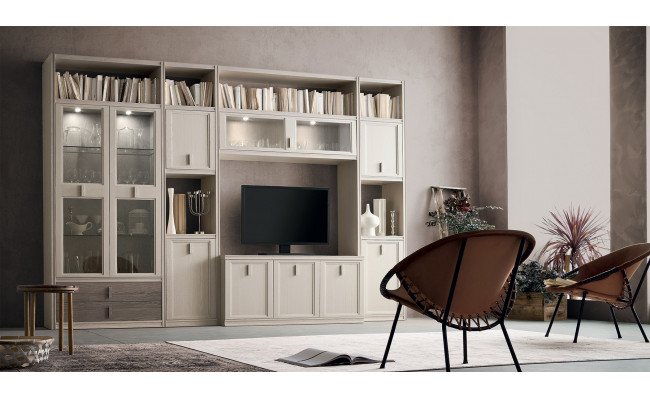 Iris è una collezione per la zona giorno composta da elementi modulari previsti in numerose finiture.