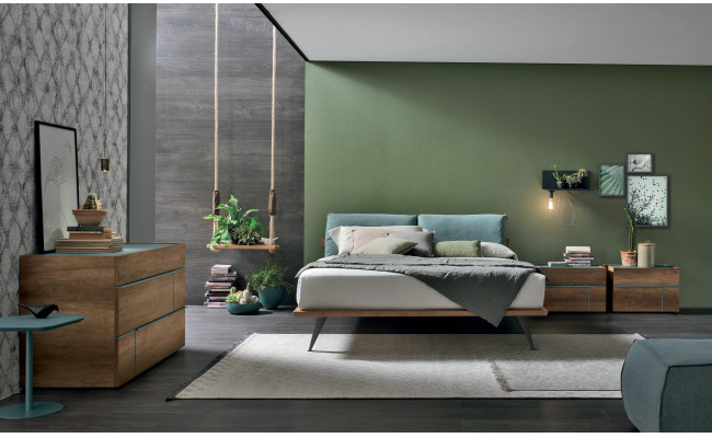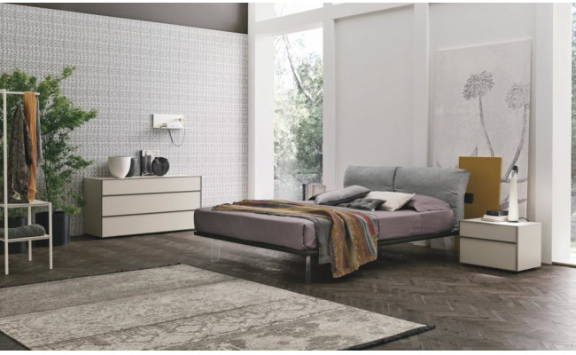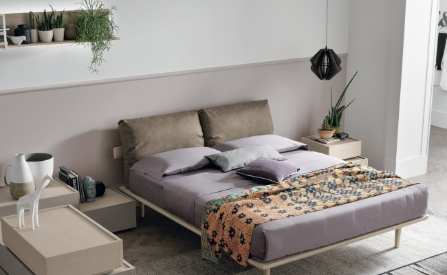 La testiera è formata da due cuscini over size sorretti da una doga orizzontale. Il letto diventa estremamente confortevole, come un divano, perfetto per dormire ma anche per rilassarsi dopo un'intensa giornata.