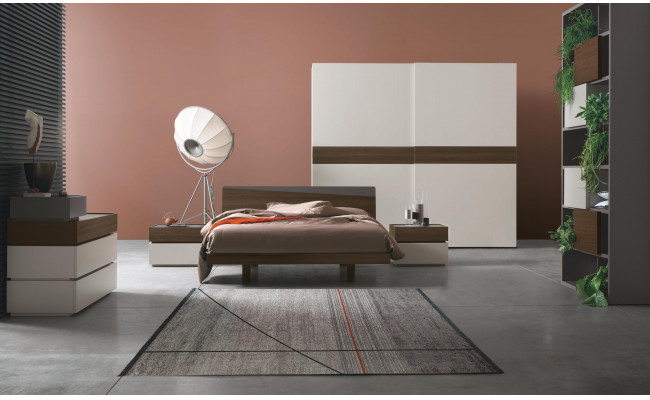 Una forma diagonale spezza la continuità delle venature che si posano sulla notte con anturalezza e infondono armonia alla camera da letto su tutta la superficie e mette in risalto la parte superiore della testiera.