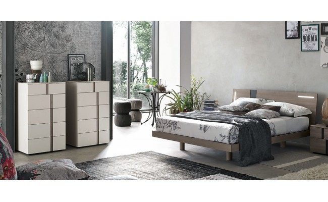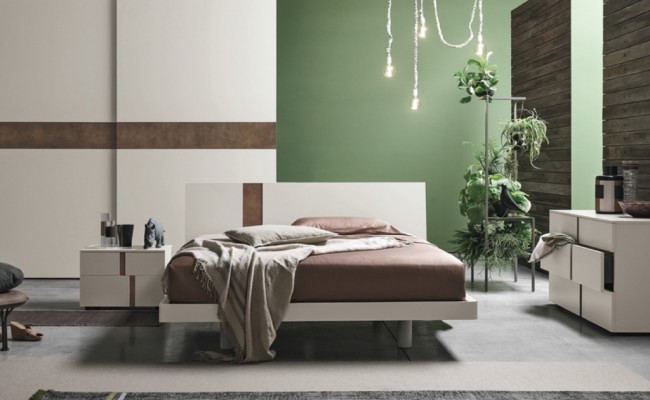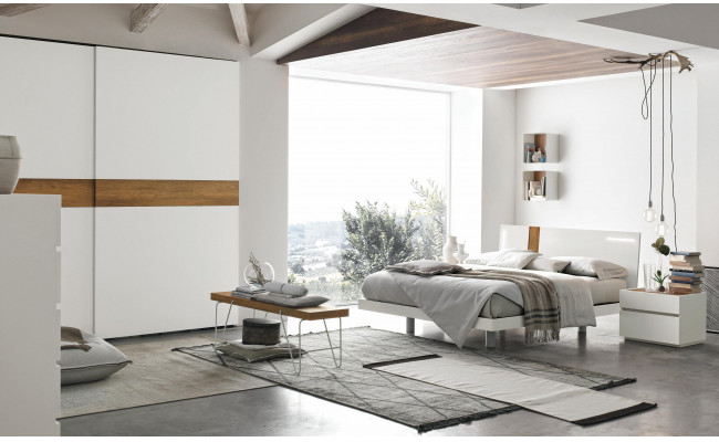 Un inserto verticale in diverse finiture dà un tocco decorativo alla testiera: insieme ai dettagli luminosi infonde alla camera da letto un carattere di assolutà modernità ed importanza.