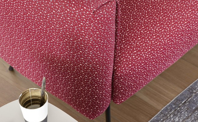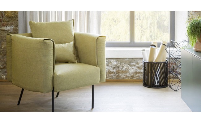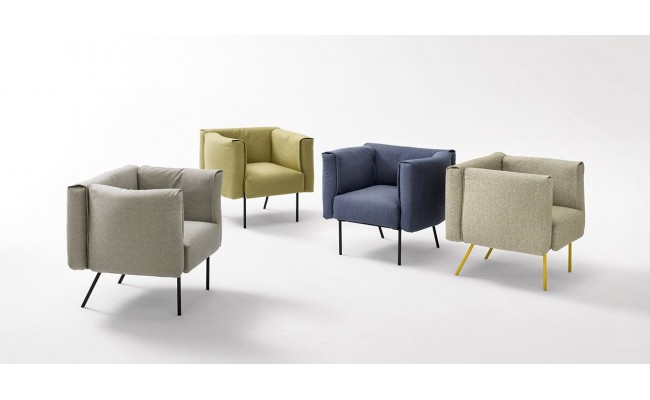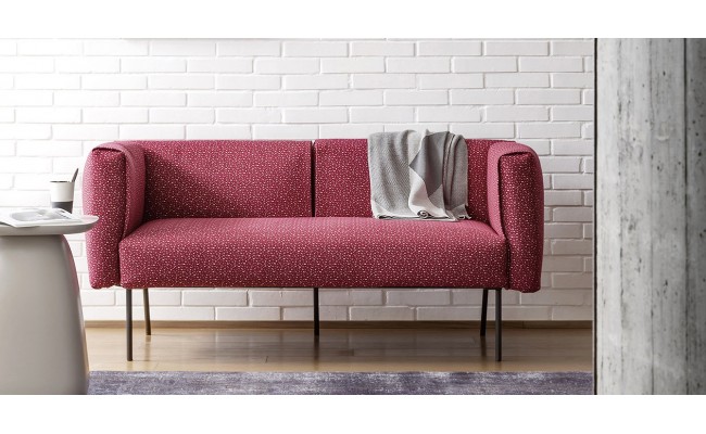 Elegante, snello e facilmente sfoderabile, divano dalle linee semplici, perfetto sia per ambienti domestici che pubblici. I cuscini sono sorretti da una struttura esile in metallo che si caratterizza per l'inclinazione delle gambe nella parte retrostante.