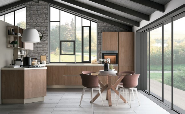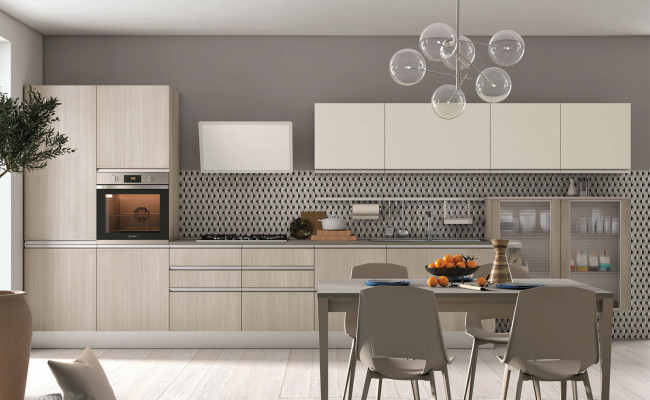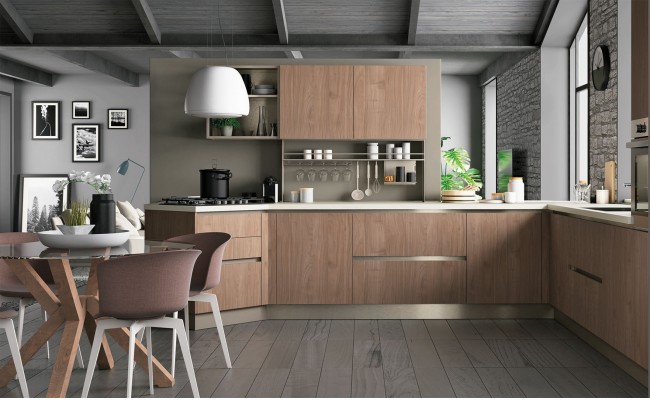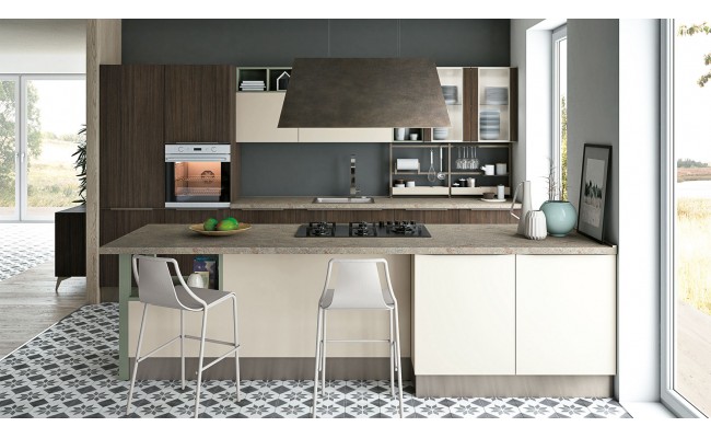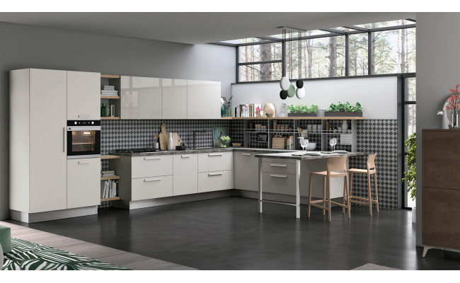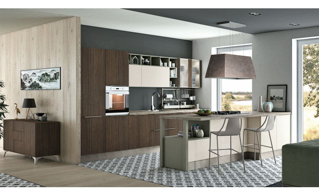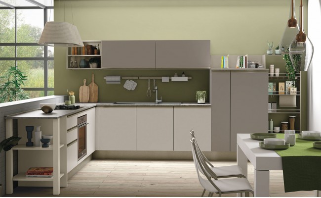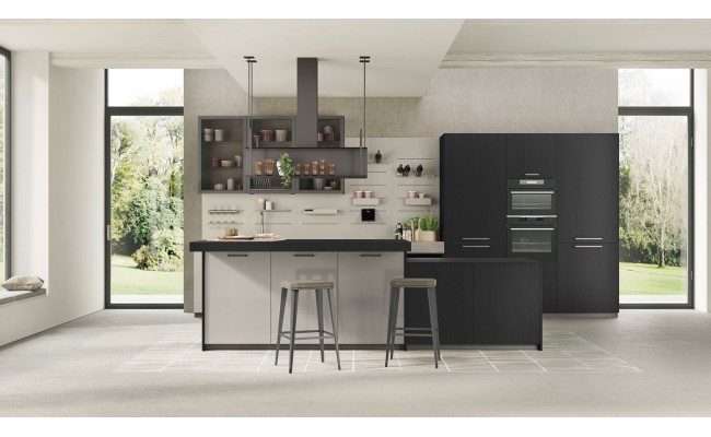 Le ante, realizzate in laminato melaminico, laccato UV, vetro o legno impiallacciato, garantiscono varietà estetica e qualità.