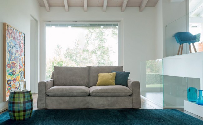 L’elevato comfort è dato dall’ imbottitura del cuscino di seduta e schienale in poliuretano espanso, piuma d’oca e fibra di poliestere e infine dal molleggio a cinghie elastiche. In gamma vi sono elementi con due braccioli, componibili - divani, poltrone, dormeuse e meridiana - e una gradevole poltroncina con braccioli più stretti rispetto ai divani.