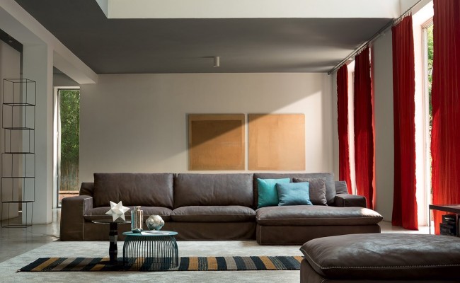 La sua morbidezza contrasta con la linea grafica della cucitura a vista che definisce le forme del divano e lo rende un modello prezioso e unico. La cucitura può essere a contrasto o tono su tono, i braccioli possono essere più o meno sottili, e lo schienale a trapezio è l'elemento che lo contraddistingue.