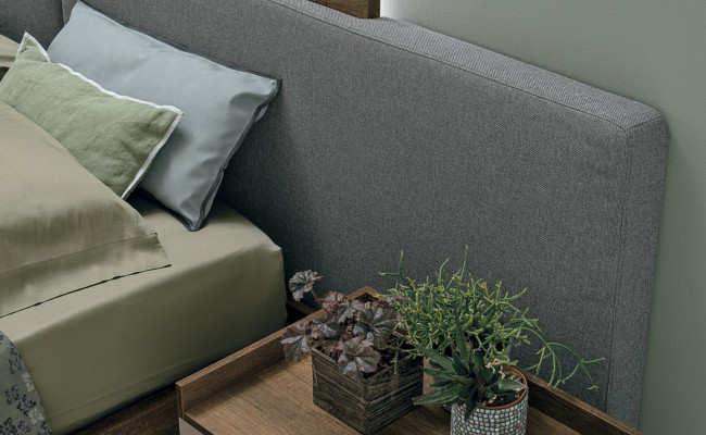 Più di un letto, Halifax di Tomasella è un vero e proprio elemento d'arredo, capace di attirare l'attenzione su di sè. Diversi elementi, forme e materiali disegnao e compongono la testiera, mentre la luce ne esalta la particolarità.