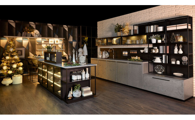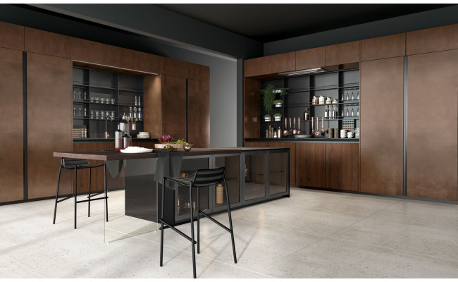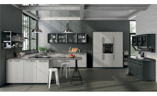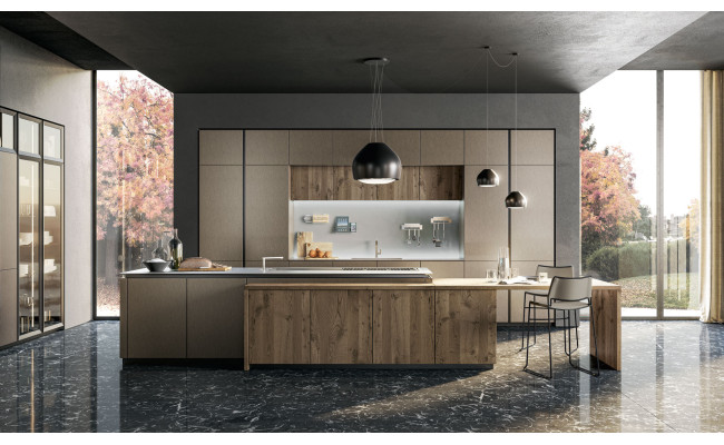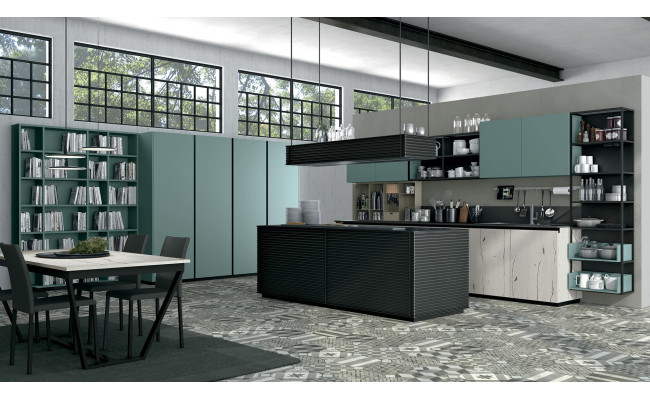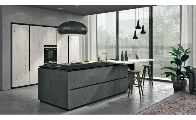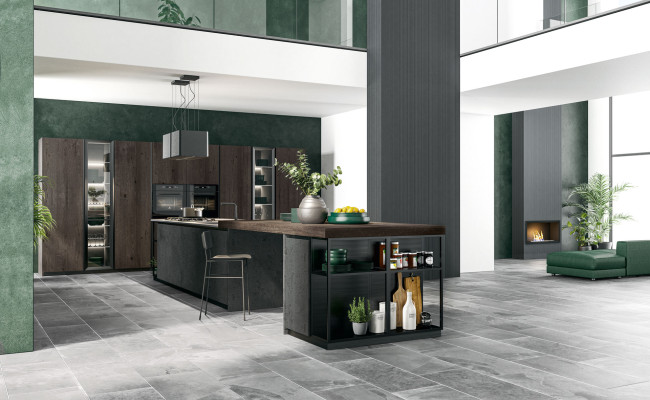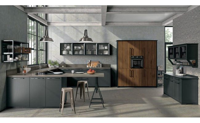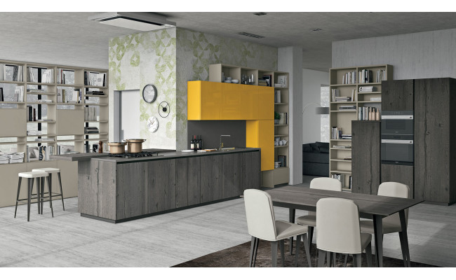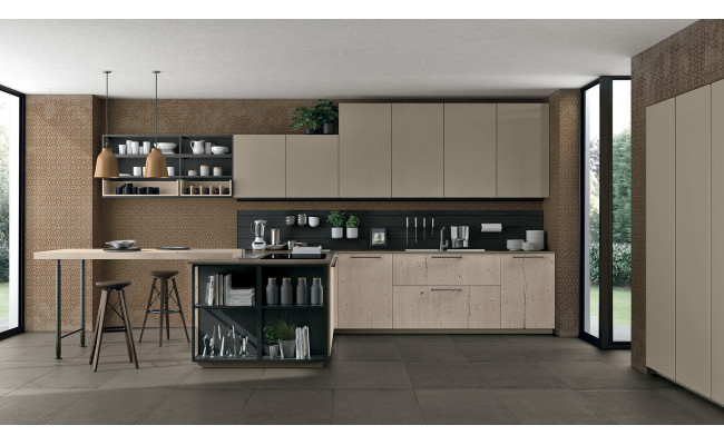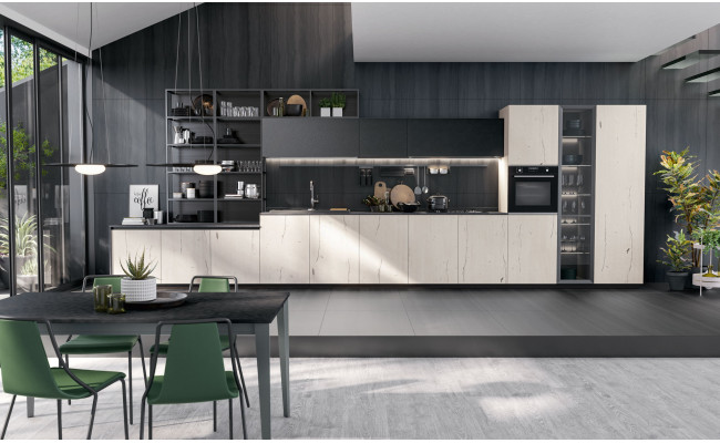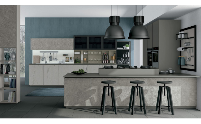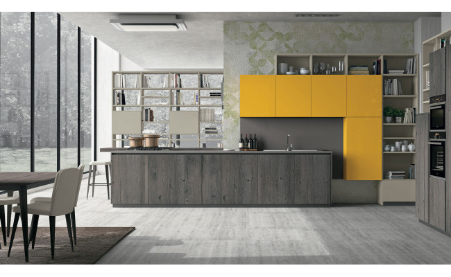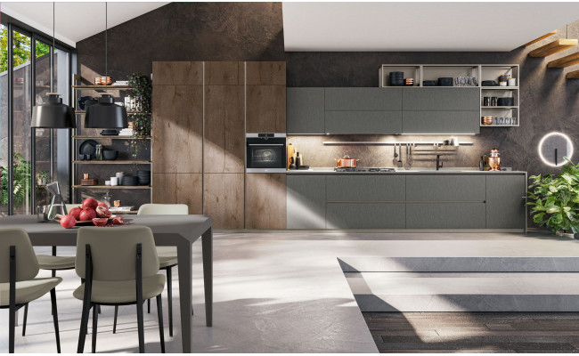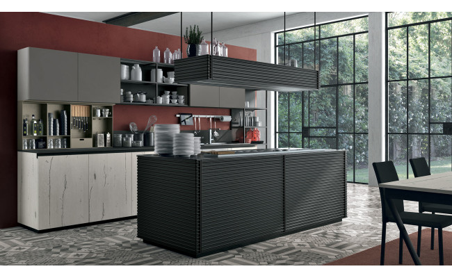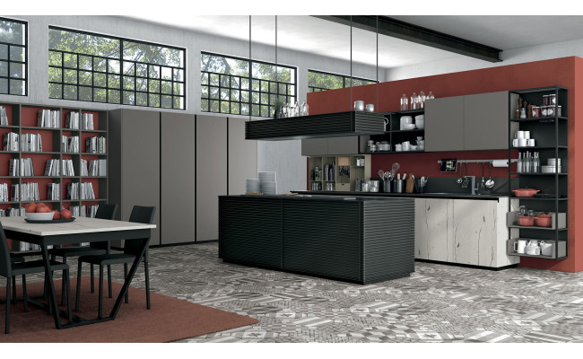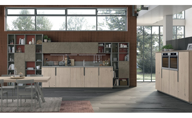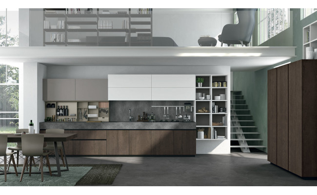 Rigorosa nella sua linearità ma ricca nella sua essenza Oltre del gruppo Lube presenta, finiture particolari ed accessori che la rendono assolutamente unica nel suo genere. I colori ed i materiali sono tanti e studiati per essere abbinati elegantemente insieme, raffinati e pregiati come le ante realizzate con malta stesa a mano, con effetto cemento, oppure in legno impiallacciato dalla forte tattilità. Caratterizzata dalla meticolosa cura del dettaglio e da un’ampia modularità, Oltre diventa protagonista anche nello spazio living e dining con esclusive soluzioni arredative di design.