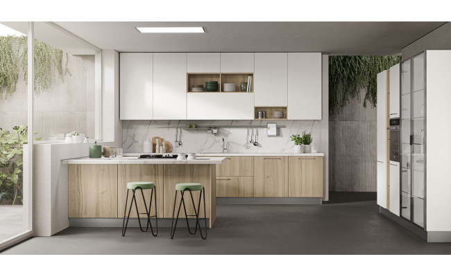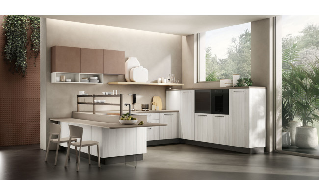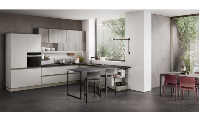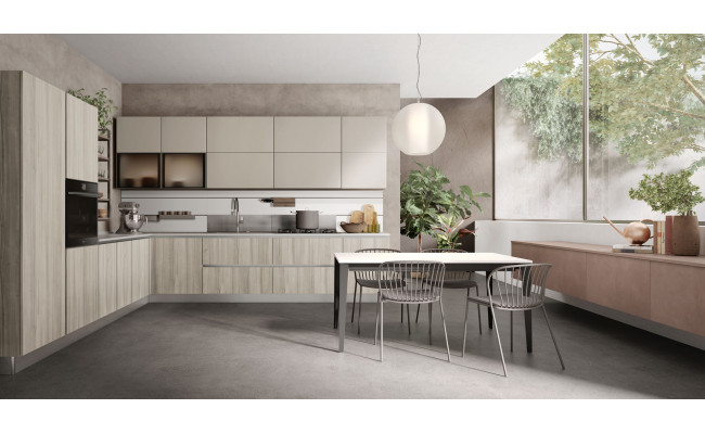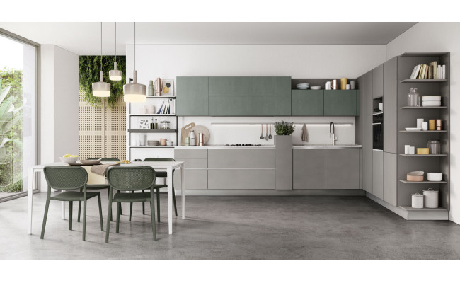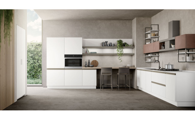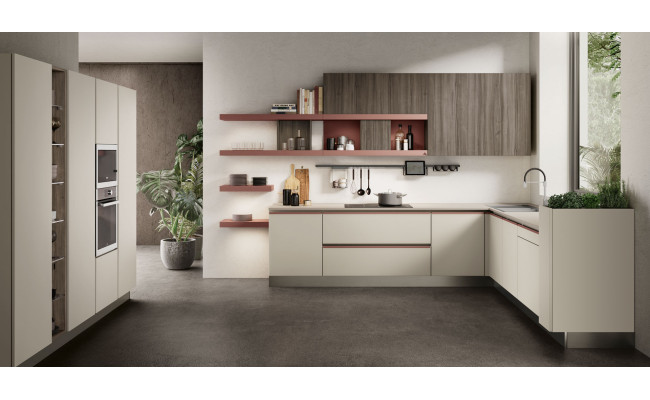 Dall'anta stondata sui bordi e dalle nuove nuance la cucina Unica di Lube unisce qualità e innovazione .