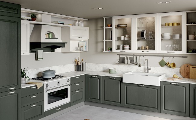 La cucina Grace di Creo Kitchens, firmata Gruppo Lube, interpreta lo stile classico con un tocco moderno, unendo richiami alla tradizione e grande attenzione alla funzionalità. Il suo design raffinato la rende perfetta per arredare con stile sia piccoli ambienti che ampie cucine, offrendo sempre soluzioni su misura per ogni esigenza.