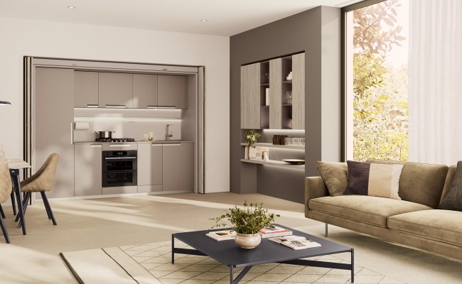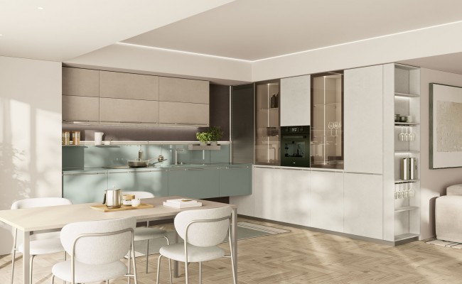Creo Kitchens ha pensato a ogni dettaglio nella creazione della Maxima: sistemi di apertura senza maniglie, soluzioni di stoccaggio intelligenti e una disposizione ottimale degli spazi rendono questa cucina estremamente funzionale e adatta alla vita quotidiana. Ogni elemento è pensato per semplificare le operazioni quotidiane e migliorare l’organizzazione, pur mantenendo un'estetica impeccabile.