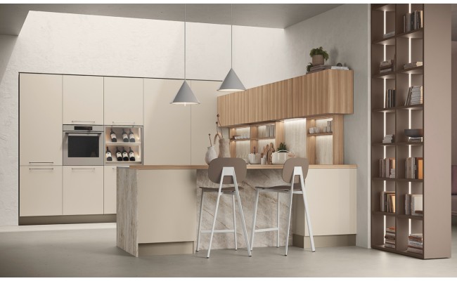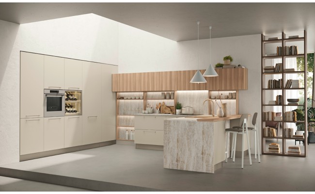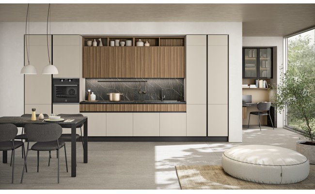 Lube, leader nel settore delle cucine, propone con il modello Ready un'ampia gamma di finiture e materiali che permettono una personalizzazione totale, dalla scelta del colore alla texture delle superfici. Il design minimalista e le linee pulite caratterizzano questa cucina, che si adatta facilmente a spazi moderni e funzionali. Con sistemi di apertura moderni e un'attenzione ai dettagli, la Ready è pensata per ottimizzare ogni angolo della cucina, rendendo l'ambiente comodo e pratico, senza sacrificare lo stile.