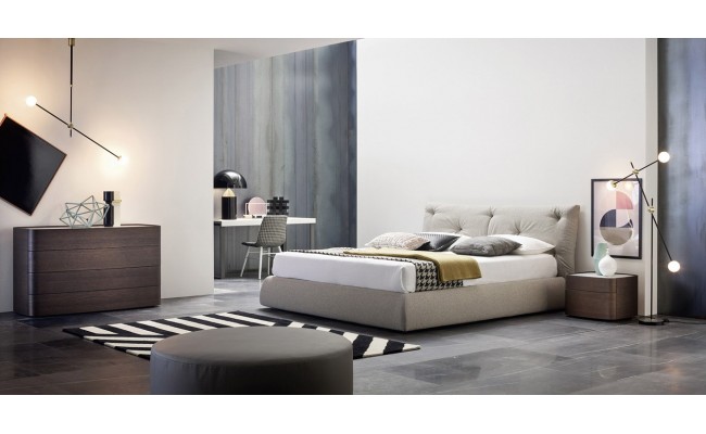 Nella collezione notte Norman si incontrano la solidità del legno, disponibile in rovere miele e rovere terra, e la sobria eleganza del marmo di Carrara.