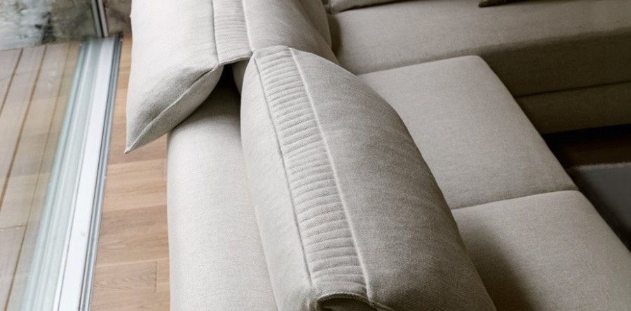 Un’elegante cucitura trapuntata, ispirata al mondo della pelletteria, suddivide il cuscino di schienale in 2 parti imbottite di cui una più piccola, che funziona da poggiareni o poggiatesta a seconda di come viene orientato il cuscino: in questo modo l'utilizzatore può creare il "suo" divano ideale, ottenendo il massimo comfort in ogni situazione, dal relax, alla lettura, alla conversazione.
