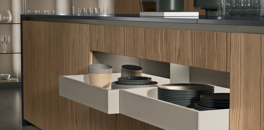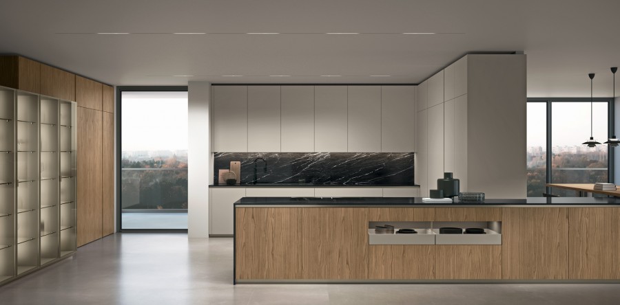 Tecnologia e Innovazione: La cucina Brera è dotata di soluzioni tecnologiche all'avanguardia, come elettrodomestici integrati e sistemi di illuminazione LED, che migliorano l'efficienza e creano un'atmosfera accogliente.